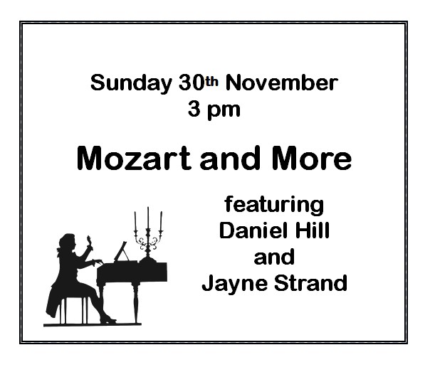 We are delighted to confirm that Daniel Hill and Jayne Strand will be performing once again at Holy Trinity Church on Sunday 30th November at 3 pm in a one hour concert entitled 'Mozart and More'. Details of the programme will be announced shortly. Please click the attachment to below to see their biographies.
