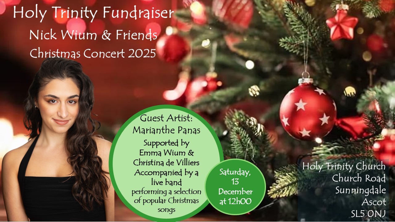 Please do join us for another spectacular Christmas musical event masterminded by Nick Wium at midday on Saturday 13 December at Holy Trinity Church. The guest artist will be Marianthe Panas (star of Starlight Express), supported by Emma Wium and Christina de Villiers and supported by a live band.